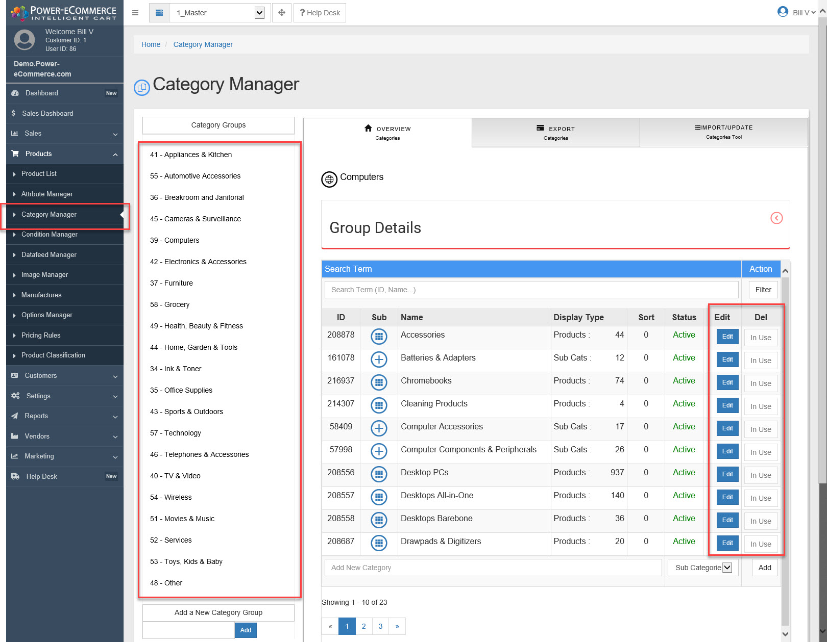 - Now click "Edit" on the category or the categories parent category. (you may need to drill down to get to the category you are looking for you may also search for it in the search box). (if there are no products in a Category then you can delete that Category).