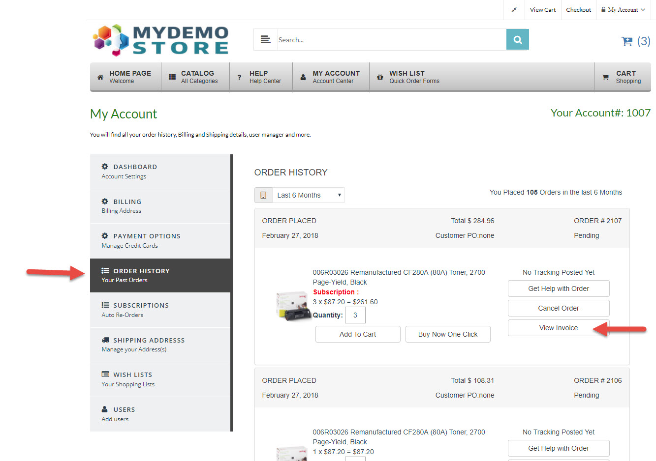 - Have the customer Login to your Store ("www.mystoredomains.com/MyAccount/") .