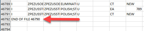 - Next delete the last line of the file END OF FILE XXXXX if you forget to do this the price upload will fail.