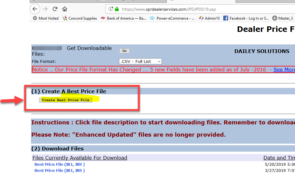 - When file is done generating it will update in the list of Download Files. Click on Best Price File.